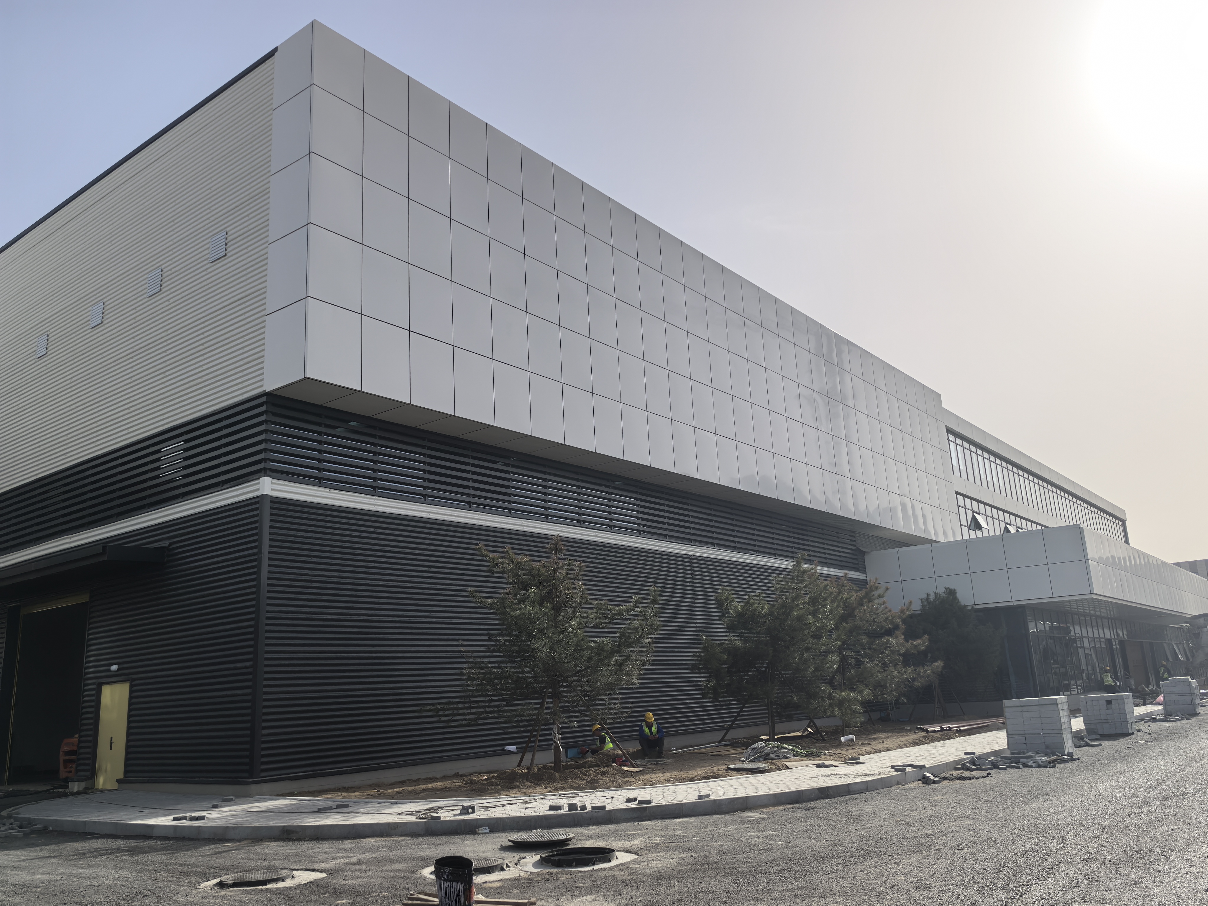 本項目坐落于包頭稀土高新區朝陽路以東,騰飛大街以南,凌云路以北,星輝路以西,總建筑面積22705.81平方米,2棟車間主體為單層門式鋼結構。其中,2#生產車間高度15.73米,最大單跨跨度34.6米;3#生產車間高度16.1米,最大單跨跨度43.1米;連廊主體為混凝土框架結構,高度10.8米,最大單跨跨度13.5米。工程內容包括建筑、結構、給排水、電氣、暖通等。工程開工建設后,項目團隊錨定竣工交付目標,突破場地限制、有效工期短暫、結構復雜等不利因素,采取給排水、電氣、暖通專業與主體建筑同步推進的先進施工方法,精心編制施工計劃,優化工序流程,增加勞動力投入并實行兩班倒,每日召開工作碰頭會,及時解決制約現場生產的各類問題。項目建設者掀起大干一季度、二季度施工建設熱潮,戰高溫,斗風雨,提前6天完成3#車間主體結構,105天內實現全線封頂目標,168天內完成竣工驗收,實現“當年開工、當年竣工”的優異戰績,受到業主、監理、專家等多方好評。