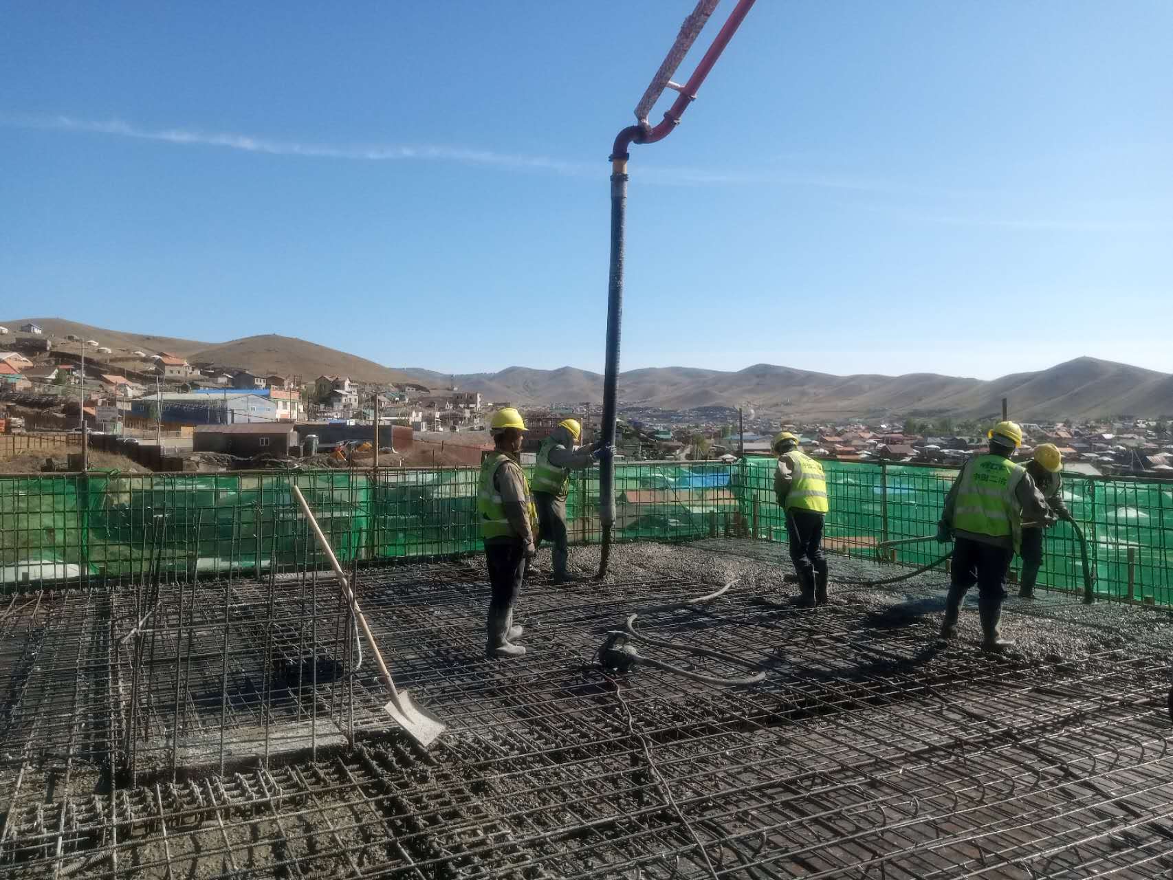 與夏同行,播種在希望的田野里?!盀槊晒艊?jīng)濟建設(shè)賦能,保證項目按時完工是我們義不容辭的責(zé)任,氣溫再高,我們的建設(shè)不能降溫,也要火熱推進”,被高溫日曬面部黝黑的項目部經(jīng)理依然激情滿滿地說。蒙古國烏蘭巴托市丹巴達爾扎供熱廠項目是蒙古國積極應(yīng)對基本城市日益增長的需求服務(wù),不斷增強當?shù)厝嗣裥腋8泻桶踩械闹攸c項目。工程開工建設(shè)后,項目團隊克服當?shù)貧夂驐l件惡劣、兩國施工技術(shù)差異大、材料供應(yīng)短缺等不利因素,突破項目大體積混凝土澆筑體量大、施工工藝復(fù)雜,支撐體系龐大,質(zhì)量要求高等施工難點,科學(xué)組織,倒排工期,掀起大干熱潮,與高溫對訣,爭分奪秒,晝夜輪班奮戰(zhàn),搶奪有效施工期,建設(shè)者頂強風(fēng)冒酷暑,揮汗如雨,辛勤耕耘,于近日順利完成辦公樓主體結(jié)構(gòu)施工任務(wù),實現(xiàn)封頂目標,中國二冶建設(shè)者奮戰(zhàn)海外,不負當夏,跑出施工建設(shè)“加速度”。