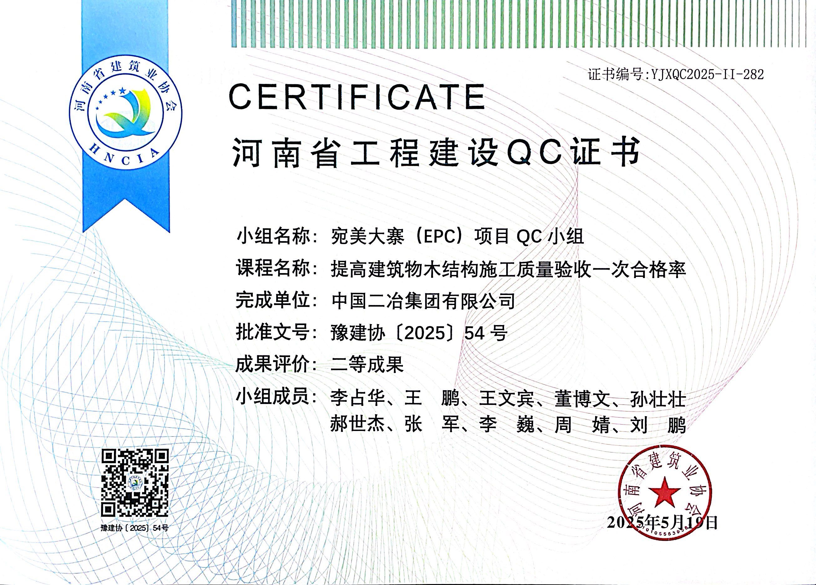 近日,省建協(xié)公布了2025年河南省工程建設(shè)質(zhì)量管理小組活動成果評價(QC評價)結(jié)果,中國二冶集團(tuán)中原分公司申報的《提高頂管施工一次驗(yàn)收合格率》《提升靠近地鐵側(cè)深基坑逆作法施工效果》《提高建筑物木結(jié)構(gòu)施工質(zhì)量驗(yàn)收一次合格率》榮獲二等成果評價。