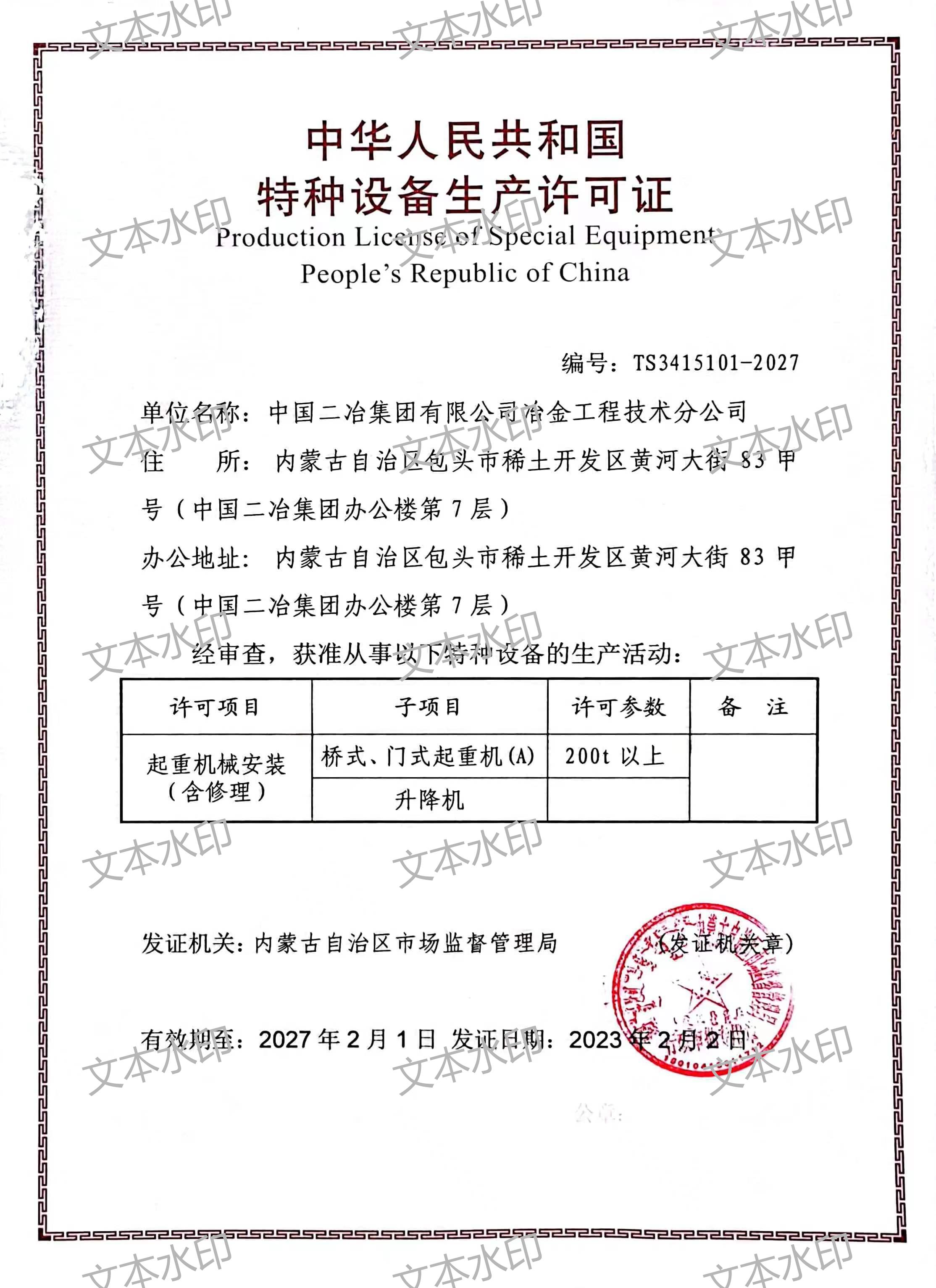 下一篇: 中華人民共和國特種設備安裝改造維修許可證(壓力管道)