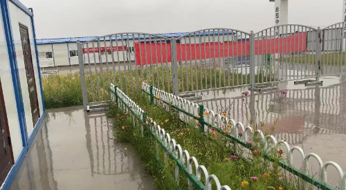 九月的雨,渲染戈壁荒景后有些出境,我不覺得天色暗了,只覺得門前綠化帶里的車前菊莫名吸睛。“工地三大喜之一”總是不期而遇,現場的每一個人都能找到自己的“專屬領地”。隔壁床的麻工窩在被子里向心念的人分享浠瀝間的浪漫,房間里的楊工突然驚起,吱哇的沖出房間收起外面洗好的上衣,我也搬出自己的小凳倚著窗戶靜靜的坐著......可能我也沾染到了他們情愫,看著不遠處地下倒置的安全帽被雨水斟滿,回過神來拿起手機記錄這一刻,便也覺得輕松了很多。