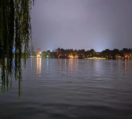 晚上閑暇時刻突發意念,便想起去大明湖夜游。大明湖湖面寬廣,湖中有幾個小島,但景觀大部分在四周的沿岸。盡管坐船覽湖,有披波激浪的愜意,有閑風拂面的輕松,但卻是走馬觀花。“紙上得來終覺淺,絕知此事要躬行”,要細細地、慢慢地品賞大明湖,巧遇是一種浪漫,大明湖是適合浪漫的。雖然它不具鼓浪嶼醉的人海風,更沒有迷人的沙灘,不具杭州西湖那么遼闊和名氣,但我覺得它是北方城市中最浪漫的湖。游大明湖,無論年齡多大,我想最好給自己一個愜意的理由,懷一顆浪漫的心。讓那堤岸搖蕩的垂柳,輕拂額頭,撩撥久居市井而混沌的心胸,撣禪生活中積沉的塵燥。如果你意誠,柳拂是能禪心的。心明了,眼亮了,滿目就會是紅情綠意。整體來說大明湖景點的燈光很美,
