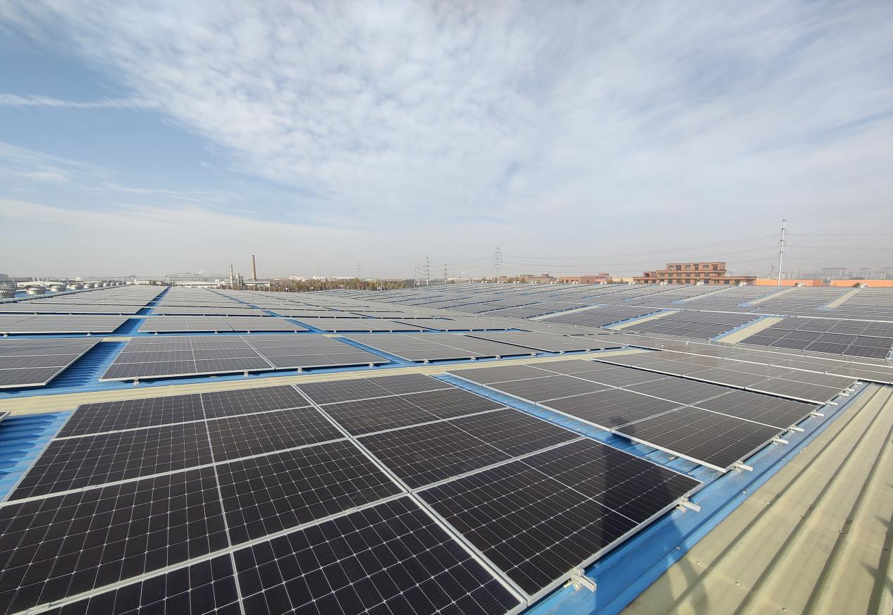 1月28日,中原分公司溫縣光伏發電項目首個廠房屋頂光伏組件鋪設工作順利完成。