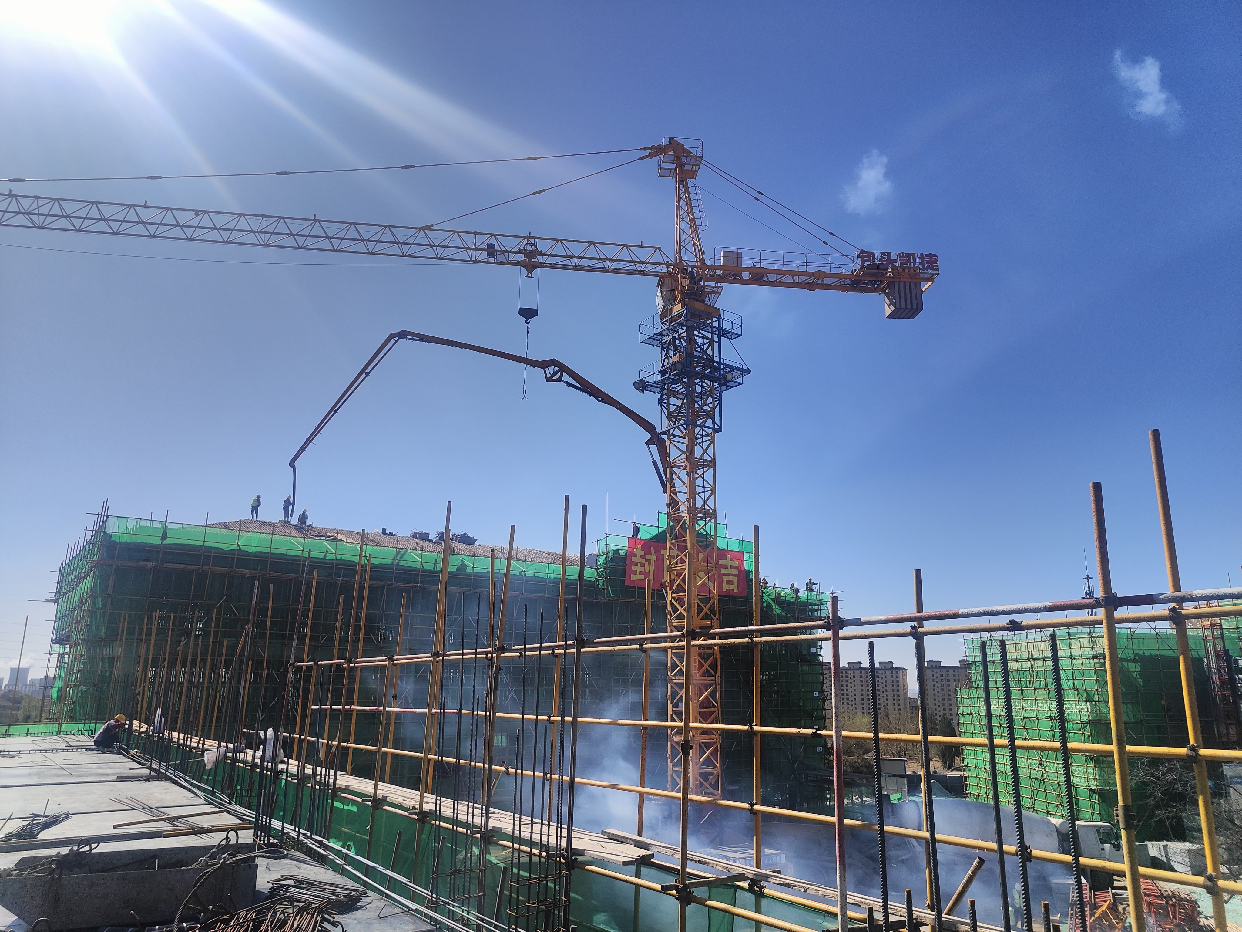 4月18日,城建分公司包頭市職工健康休養中心改擴建項目2#休養樓工程封頂大吉。