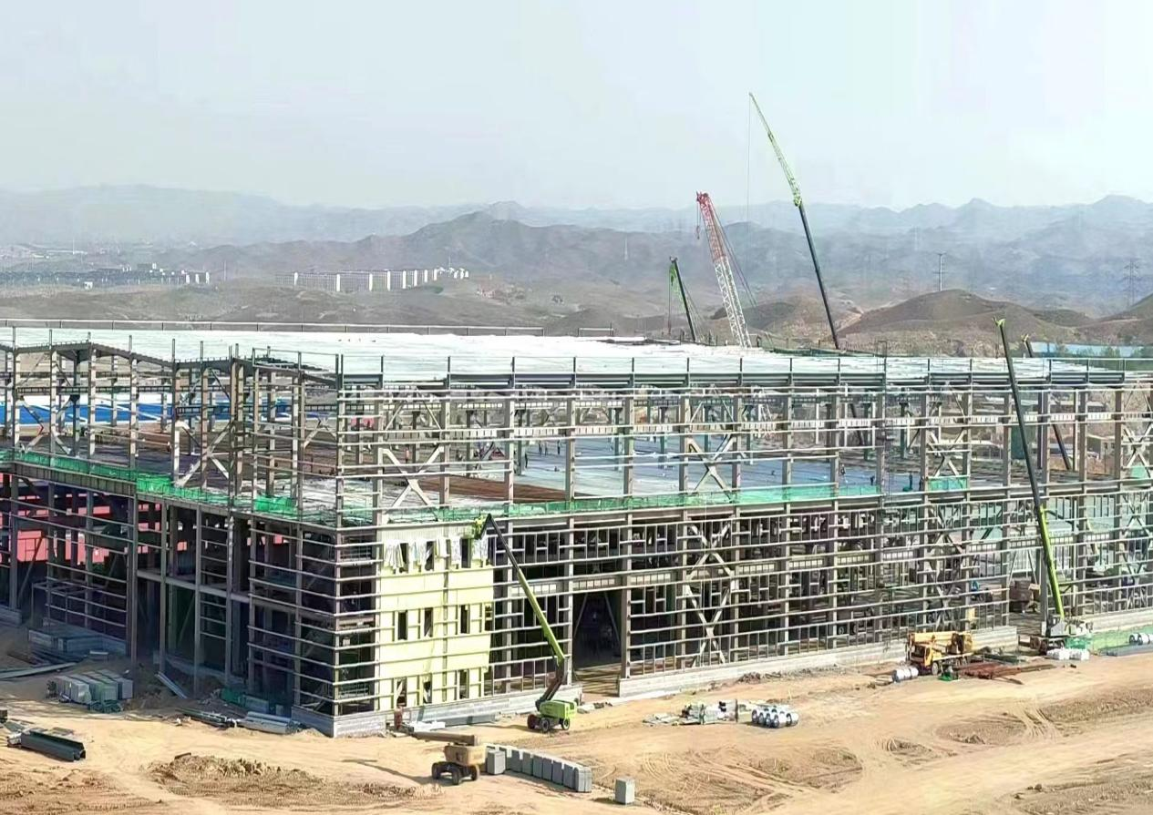 該工程位于內蒙古自治區包頭市石拐區科創園區內科新路以南,宏圖大道以西,建筑物包括1#一5#標準廠房的鋼結構制作安裝及辦公樓,宿舍,食堂,換熱站,圍墻,大門等單體工程附屬設施。項目總建筑面積128655.25平方米。為早日完成施工任務,項目團隊科學統籌,精心組織,充分利用“五一”假期,搶抓施工黃金期,爭分奪秒,項目呈現一派繁忙景象,參建人員以“假期”為工期,以飽滿熱情,堅守奮戰一線,保障了項目快速有序推進。