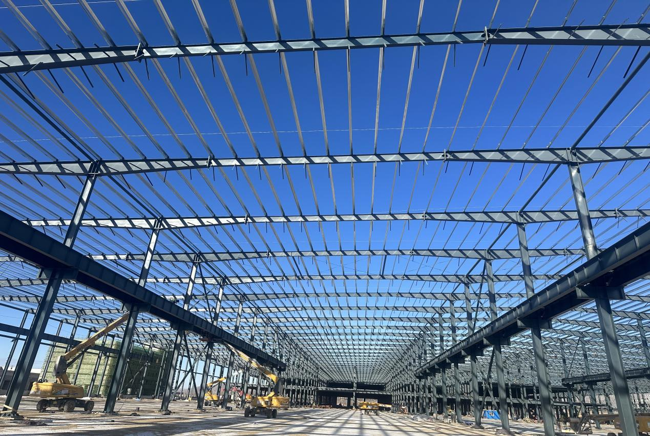 11月29日,鋼構(gòu)分公司緯景儲能智造基地建設(shè)項目鋼結(jié)構(gòu)安裝勝利完成,標(biāo)志著項目全面進(jìn)入圍護(hù)結(jié)構(gòu)安裝。