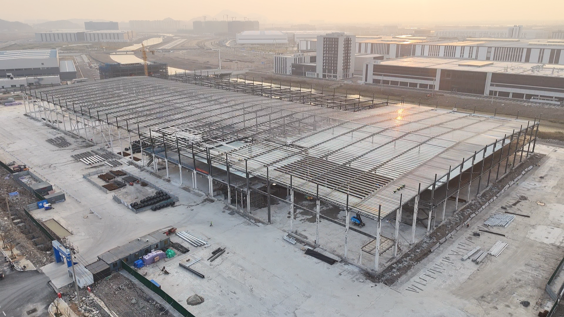 12月17日,市政分公司承建的緯景儲能鋅鐵液流電池(溫嶺)智造基地建設項目1#廠房主體鋼結構吊裝工作完美收官。