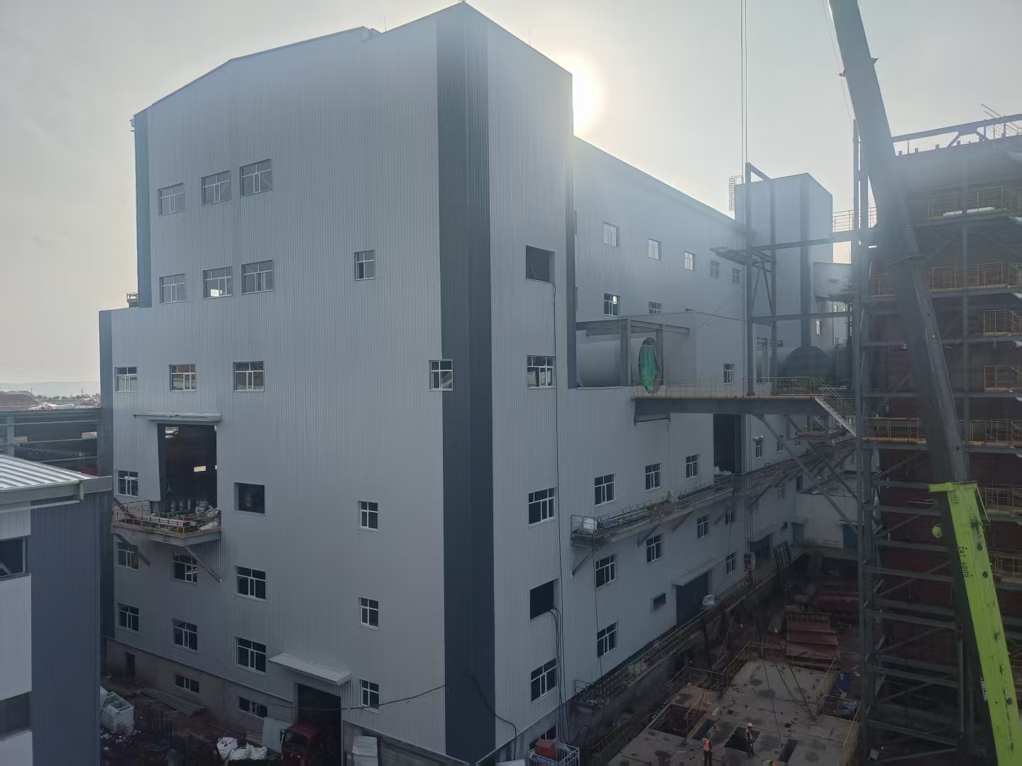 匯能硅鋁項目緊扣國家“雙碳”目標,將綠色理念融入發展實踐,持續探索以生態“含綠量”撬動發展“含金量”。其中,礦熱還原工程建筑面積4891平方米,長146米,寬33.5米,高45米,六層鋼結構,是本項目最大的主廠房。施工過程中,針對礦熱還原工程施工戰線長、混凝土澆筑體量大、施工工藝復雜等攔路虎,項目部團隊提前優化施工組織設計和施工方案,強化質量巡檢、材料進場檢驗、安全每日監管頻率,通過分區突擊、“土建+專業”工序有效銜接、增派專業隊伍、實施進度日考核等舉措,集中優勢資源攻堅推進,確保礦熱還原基礎在26天內完成,主體結構177天完成,跑出施工加速度。在此基礎上,項目部搶抓黃金施工期,節假日不停步,提前完成二次維護、裝飾裝修等關鍵節點,土建工程就此全面完成。