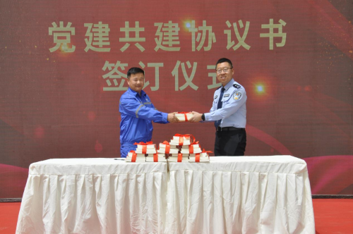 在辦實(shí)事、開新局環(huán)節(jié),公司新城佳園項(xiàng)目部黨支部與邯鄲市公安局峰峰礦區(qū)分局太安派出所簽訂黨建共建協(xié)議書,共同推進(jìn)雙方黨建工作向縱深發(fā)展。隨后,公司黨群工作部副部長王志義為共建黨支部贈送紅色書籍。之后,全體人員集體宣誓,表示將繼承優(yōu)良傳統(tǒng)、立足崗位建功,鑄就精品、追求卓越,團(tuán)結(jié)拼搏、開拓創(chuàng)新,樹一流形象、建一流工程,為峰峰礦區(qū)實(shí)現(xiàn)城市化建設(shè)貢獻(xiàn)力量。