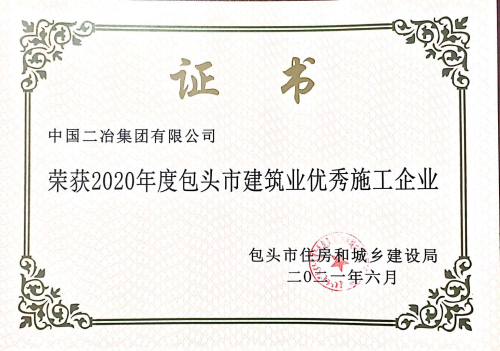 6月29日,包頭市住房和城鄉建設局(包住建建【2021】7號)公布了全市28家建筑業優秀施工企業、66名優秀建造師名單。中國二冶被授予“2020年度包頭市建筑業優秀施工企業”榮譽稱號;甘肅分公司項目經理張磊、鋼結構分公司項目經理田忠剛榮獲“2020年度包頭市優秀建造師”榮譽稱號。