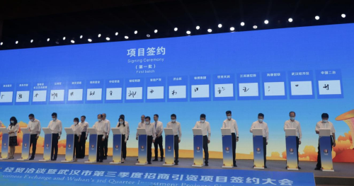 大會精準邀請了眾多與武漢市有在談項目或產業合作意向、合作潛力的世界500強企業、知名跨國公司、貿易型總部企業、外貿新業態龍頭企業等外向型經濟市場主體高管、重點國際商協會代表、重點央企、民企、金融機構負責人等高層次嘉賓。這是武漢宣布全域成為低風險地區后,舉辦的首場大規模、高規格的經貿交流活動,當天共簽約項目138個,簽約金額4122億元,其中工業項目42個,簽約金額884億元,占比21%,主要為打基礎、利長遠、增后勁的大項目、好項目。