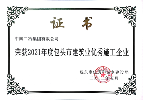 5月25日,包頭市住房和城鄉(xiāng)建設局公布全市34家建筑業(yè)優(yōu)秀施工企業(yè)、119名優(yōu)秀建造師名單。中國二冶被授予“2021年度包頭市建筑業(yè)優(yōu)秀施工企業(yè)”榮譽稱號。