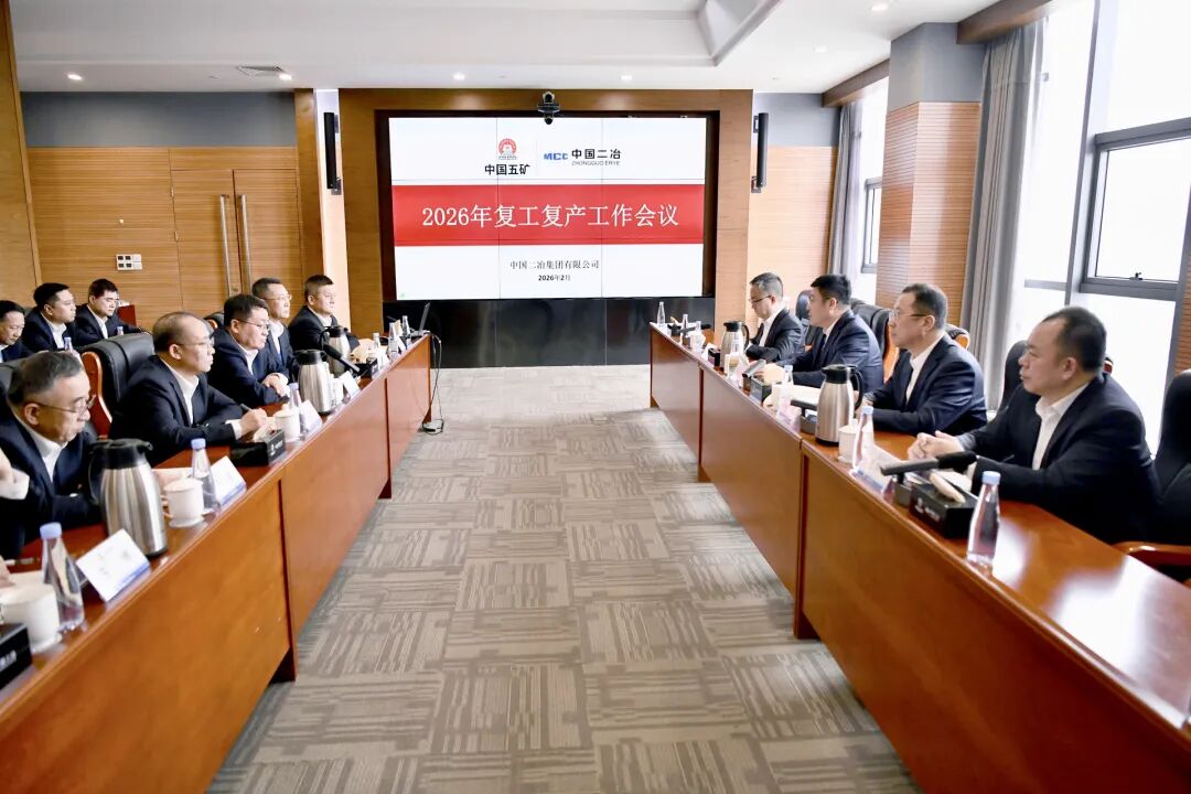 2月25日,中國二冶召開2026年復工復產工作會議,深入貫徹公司年度工作會議精神,全面部署節后復工復產各項工作,進一步明確責任分工、細化落實措施,動員全體員工迅速收心歸位,掀起大干快上的復工復產熱潮,確保復工復產安全、有序、高效推進,為圓滿完成全年施工任務奠定堅實基礎。公司黨委書記、董事長耿永旺,黨委副書記、總經理李海出席會議并對復工復產工作提出要求,總經理助理張永革主持會議。