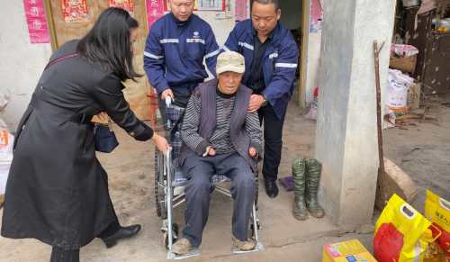 “老人家,你要好好保重身體,永遠開心快樂,有什么困難,要和項目部說,這是我們給您帶來的面粉和食用油,您一定要收下,我們會經常來看你的。”黨員們齊聲說道。