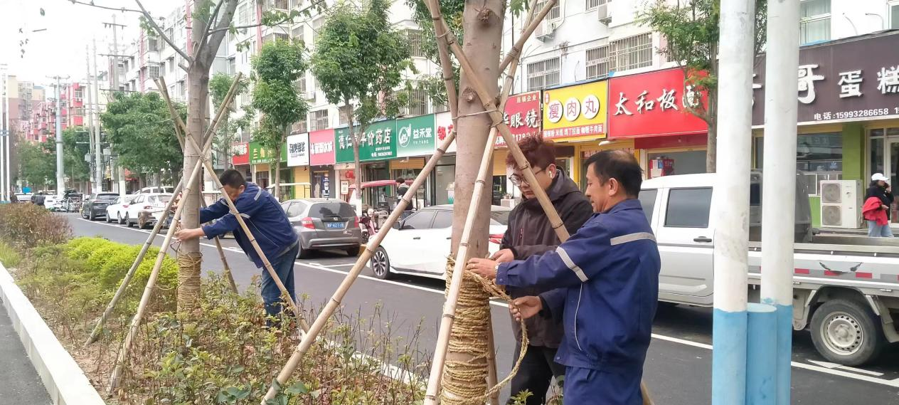 活動現場,沈丘縣城投及項目部黨員干部帶頭、團員青年職工組成清掃小分隊,對項目周邊街區進行義務清掃。大家手持鐵鍬、掃帚等清掃工具,按照提前安排的區域分工,鏟除垃圾、撿拾雜物、清掃衛生死角,并為街道兩旁綠化帶中的樹木綁上麻繩,防止樹木水分蒸發以及病蟲害的發生。整個勞動現場氣氛熱烈有序,個個干勁十足,經過一下午的積極勞動,使整個街道煥然一新,為周圍的居民打造了一個干凈整潔的公共環境。