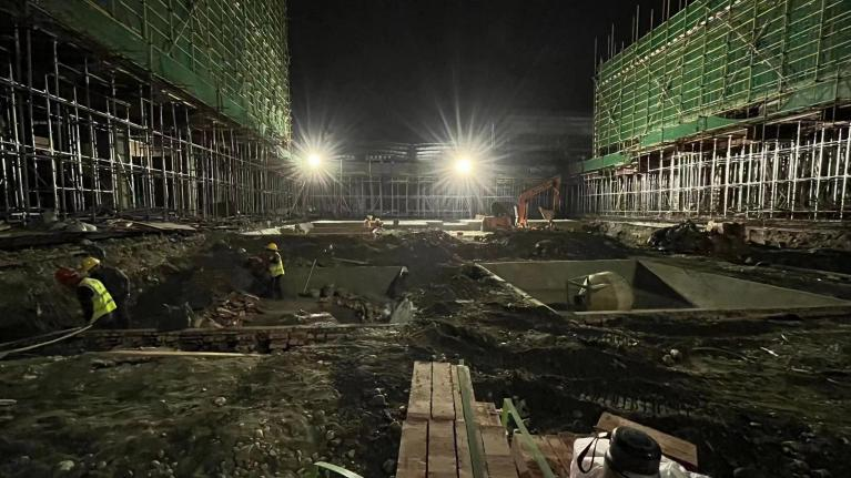 夜晚,山寒水冷,走進(jìn)資陽騮馬新村安置房項(xiàng)目,只見塔吊林立,大型挖掘機(jī)正在開挖作業(yè),建筑工人在工作崗位上緊張忙碌,綁扎鋼筋、支設(shè)木板,現(xiàn)場(chǎng)一片熱火朝天的景象。該項(xiàng)目全體人員充分發(fā)揮迎難攻堅(jiān)精神,不等不靠,對(duì)照總體工期安排和當(dāng)前施工進(jìn)度,科學(xué)倒排工期,嚴(yán)格節(jié)點(diǎn)管理,強(qiáng)化人員分工。在確保項(xiàng)目安全質(zhì)量的同時(shí),抓住夜間人員稀少、交通流量小的良好機(jī)會(huì),抓緊組織人員,展開對(duì)急難險(xiǎn)重任務(wù)的突擊作業(yè),確保每個(gè)作業(yè)面“飽和式”施工。分公司領(lǐng)導(dǎo)班子成員帶頭下沉至一線,實(shí)時(shí)管控現(xiàn)場(chǎng)進(jìn)度,確保天天有進(jìn)展、周周有變化。機(jī)關(guān)各部室則成立現(xiàn)場(chǎng)督導(dǎo)檢查小組,聚焦施工一線,總結(jié)現(xiàn)場(chǎng)進(jìn)展,解決實(shí)際問題,梳理剩余任務(wù),為施工生產(chǎn)保駕護(hù)航。